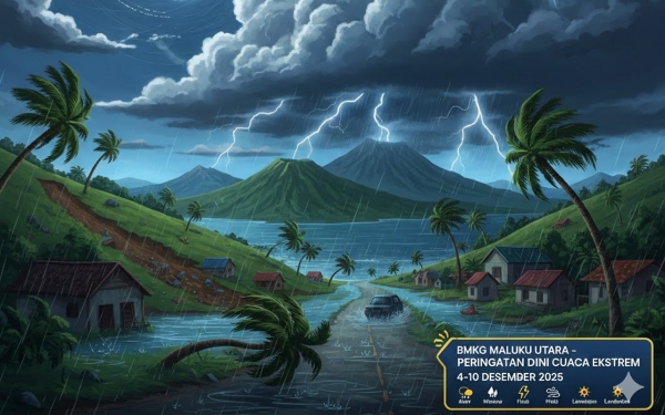 TERNATE, OT – Badan Meteorologi, Klimatologi, dan Geofisika (BMKG) Stasiun Meteorologi Kelas I Sultan Babullah Ternate mengeluarkan peringatan dini cuaca ekstrem bagi wilayah Maluku Utara untuk periode 4 hingga 10 Desember 2025 atau sepekan kedepan.