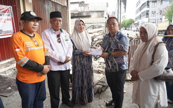 TERNATE, OT - Sekretaris Daerah (Sekda) Kota Ternate, Dr Rizal Marsaoly, atas nama Wali Kota, menyerahkan bantuan untuk korban musibah kebakaran di Kelurahan Stadion, Kecamatan Ternate Tengah, Kota Ternate.