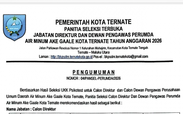Pengresmian jaringan air bersih untuk warga Tobololo yang berada di ketinggian itu, turut dihadiri Kepala Dinas PUPR Kota Ternate, Dewan Direksi dan Dewan Pengawas Perumda Ake Gaale Kota Ternate, Camat Ternate Barat, Lurah Tobololo serta warga Kelurahan Tobololo Kecamatan Ternate Barat.