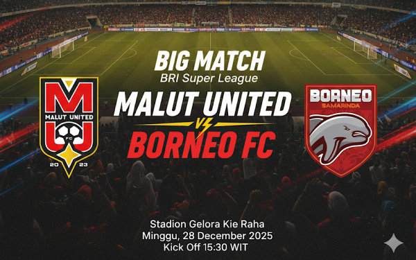 TERNATE, OT - Malut United berhasil mengalahkan Borneo FC dengan skor 3-2 dalam lanjutan laga tunda pekan ke-8 BRI Super League di stadion Gelora Kie Raha, Minggu (28/12/2025) sore.