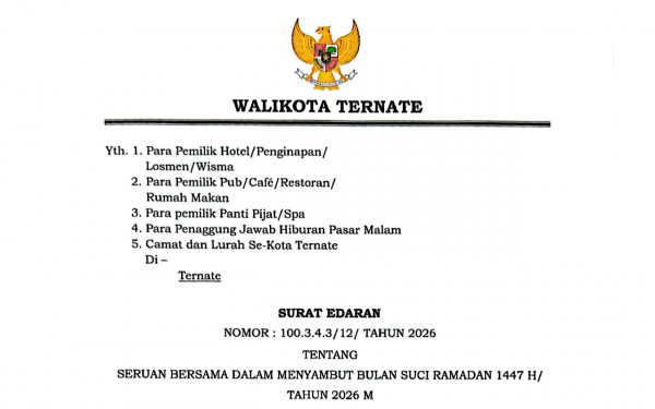 TERNATE, OT - Pemerintah Kota (Pemkot) Ternate akan menggelar gerakan bersih-bersih lingkungan bertajuk Sigofi Gam secara serentak pada Kamis, (12/2/2026).