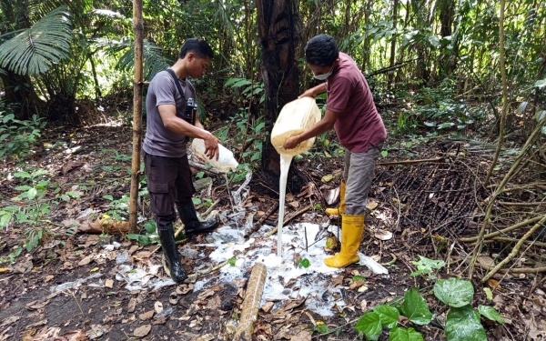Polsek Pulau Bacan Musnahkan 600 Liter Saguer dan Alat Penyulingan Miras Tradisional
