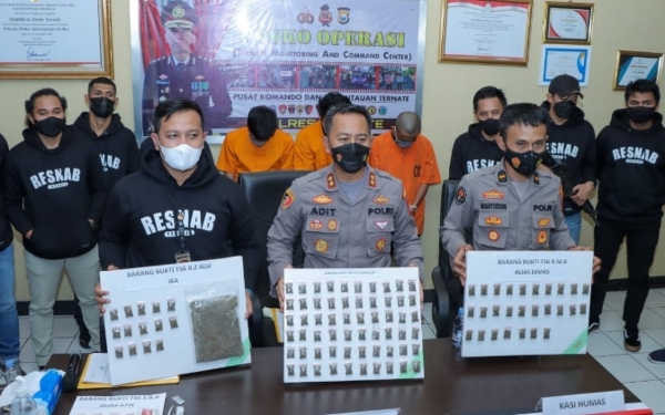 TERNATE, OT – Satuan Reserse Narkoba (Satresnarkoba) Polres Ternate berhasil menangkap 4 (empat) pengedar narkoba jenis ganja dan sabu, jaringa Narapidana (Napi) Jakarta.