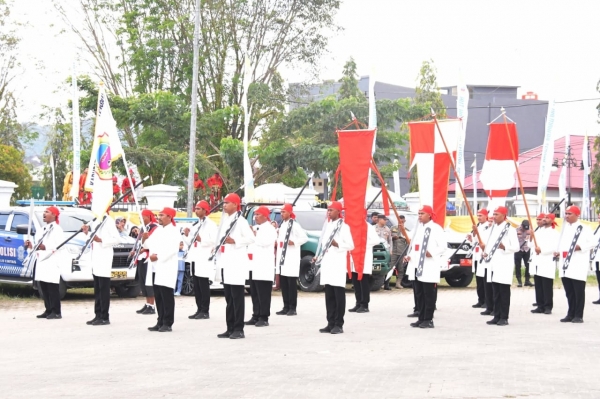Sementara, seluruh peserta upacara yang terdiri dari Aparatur Sipil Negara (ASN) dan jajaran Forkompimda serta stakeholder lainnya mengenakan pakaian adat Weda.