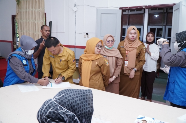 TIDORE, OT- Sebanyak 18 peserta Latsar Calon Pegawai Negeri Sipil (CPNS) Golongan III dan 35 pegawai BKPSDM Kota Tidore Kepulauan Tahun 2025 melakukan tes urine, yang berlangsung di ruang rapat BKPSDM Kota Tidore, Selasa (30/9/2025).