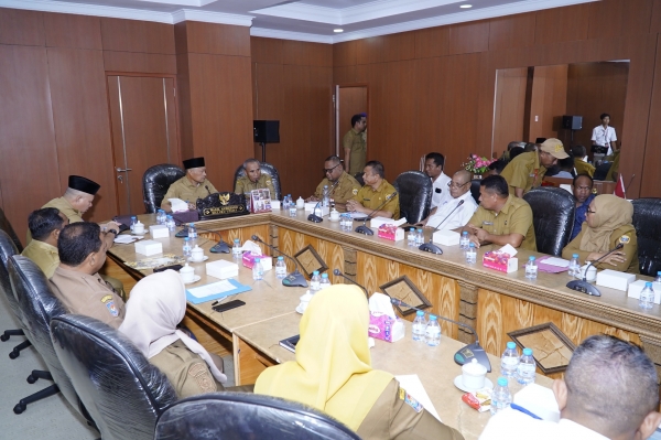 TIDORE, OT- Koordinasikan beberapa aset, Pemerintah Kota Tidore Kepulauan dikoordinir Asisten Sekda Bidang Perekonomian dan Pembangunan Taher Husain bersama Pimpinan OPD terkait audiensi dengan Wakil Gubernur Maluku Utara Sarbin Sehe beserta jajaran OPD di Lingkup Provinsi Maluku Utara di Ruang Rapat Wagub, Lantai III, Kantor Gubernur Malut, Selasa (30/9/2025).