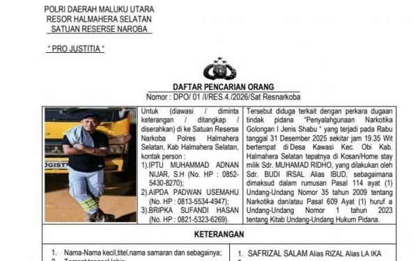 Satu Karyawan Perusahaan di Obi Jadi DPO Kasus Narkoba