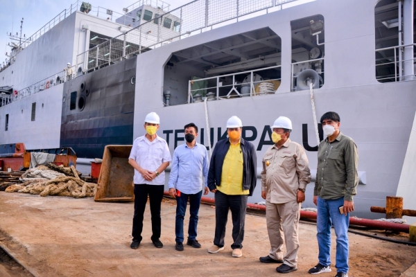 Dalam peninjauan ke area galangan kapal tersebut, Menko Airlangga juga berkesempatan untuk melihat secara langsung KRI Teluk Palu milik TNI Angkatan Laut, salah satu produksi dari PT DRU Shipyard, dan berkeliling ke beberapa bagian dari kapal.