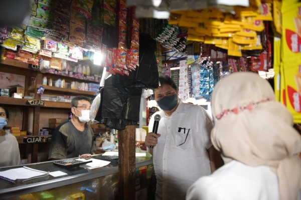 Menko Airlangga selain berkeliling meninjau bazaar murah yang diadakan stakeholders serta ke beberapa warung yang menjual bahan pokok, juga menanyakan tentang perkembangan penjualan minyak goreng seharga Rp14 ribu/liter.