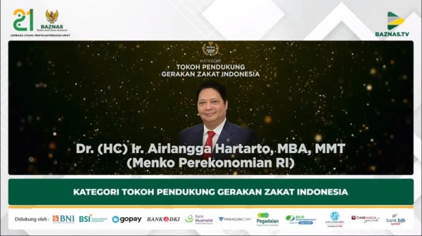 Jadi Tokoh Gerakan Zakat Indonesia, Menko Airlangga Raih Penghargaan Baznas Award 2022