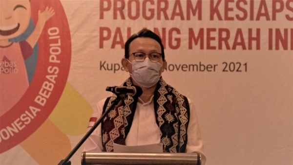 KUPANG, OT- Palang Merah Indonesia (PMI) menegaskan komitmen untuk mendukung Program Pemerintah Indonesia dalam mengeradikasi polio pada Peluncuran Program Kesiapsiagaan Polio secara resmi di Kota Kupang, Nusa Tenggara Timur, Selasa (2/11/2021).
