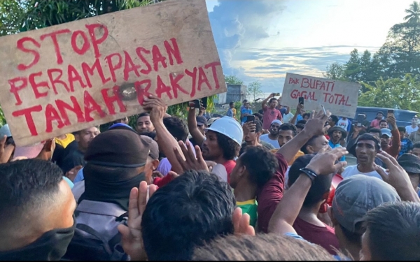 Ratusan Warga Patani Barat Hadang Bupati Halteng dan Rombongan