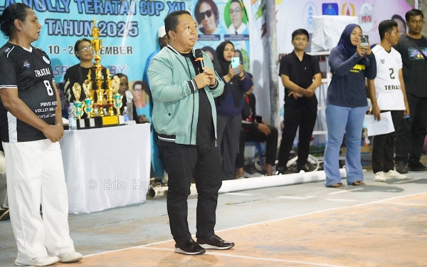 TERNATE, OT - Sekretaris Daerah (Sekda) Kota Ternate, Dr. Rizal Marsaoly secara resmi menutup turnamen bola volly Teratai Cup XII tahun 2025, di lapangan Bola Voli Kelurahan Kalumpang, Jumat (28/11/2025) malam.