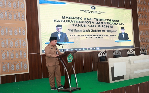 TERNATE, OT - Wali Kota Ternate, yang diwakili Sekretaris Daerah (Sekda) Kota Ternate, Dr Rizal Marsaoly secara resmi membuka agenda Bimbingan Manasik Haji Terintegrasi Tingkat Kota Ternate dan se-Kecamatan Kota Ternate 1447 H/2026 Masehi.